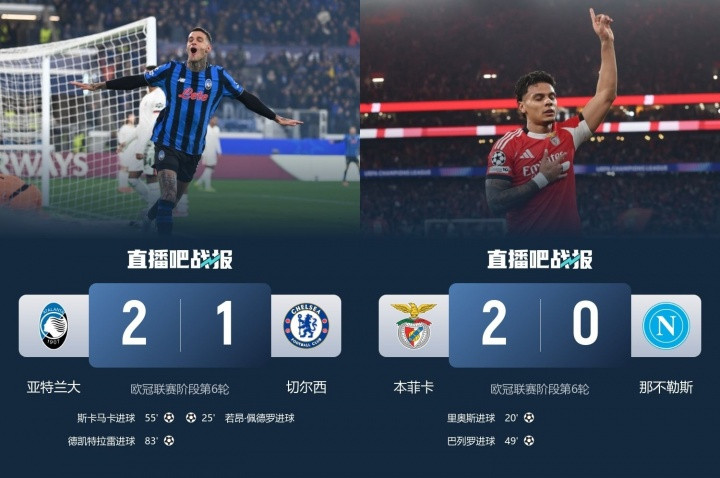 亚特兰大在欧冠4胜1平1负积13分排名第5,但是在意甲仅有3胜排名第12;那不勒斯在意甲10胜1平3负排名第2,与榜首AC米兰同分,但是在欧冠2胜1平3负仅排名23名。